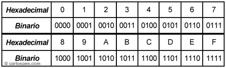Sistema de numeración hexadecimal. | En el sistema hexadecimal los números se representan con dieciséis símbolos: 0, 1, 2, 3, 4, 5, 6, 7, 8, 9, A, B, C, D, E y F. Se utilizan los caracteres A, B, C, D, E y F representando las cantidades decimales 10, 11, 12, 13, 14 y 15 . |