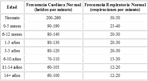 | VALORES NORMALES DE FRECUENCIA RESPIRATORIA Y CARDIACA |