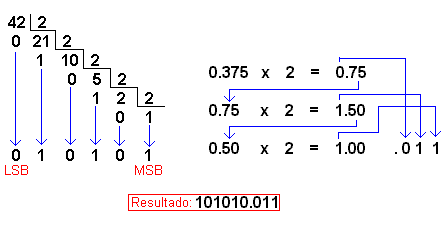 | Paso 3 | El resultado será la unión de el número binario correspondiente a la parte entera, y el número binario correspondiente a la parte fraccionaria y lo unimos en un solo numero binario correspondiente a el numero decimal. |