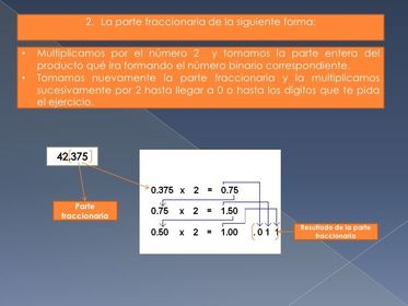 Para transformar un numero decimal fraccionario a binario se debe seguir los siguientes pasos | |