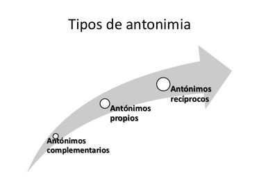 | Existen tres clases de antónimos: Complementarios, graduales y recíprocos | |