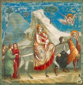 | La Huida a Egipto de Giotto, en la capilla Scrovegni de Padua 1303 d.C. | |