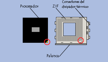 | Es el lugar donde se inserta el microprocesador. Requiere un zócalo específico | |