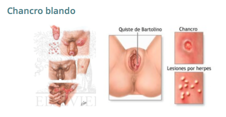El chancroide es causado por una bacteria llamada Haemophilus ducreyi. Los sintomas clínicos se manifiestan entre la combinación de úlcera dolorosa y adenopatía inguinal blanda, sugiere el diagnóstico. |