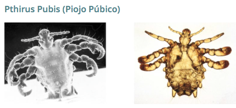 Es causada por un parásito específico para los seres humanos, Pediculus pubis, relacionado con el parásito responsable de los piojos de la cabeza. Provoca picazón localizada en la zona púbica que pueden causar daños importantes en la piel provocando sobreinfección bacteriana o costras. |