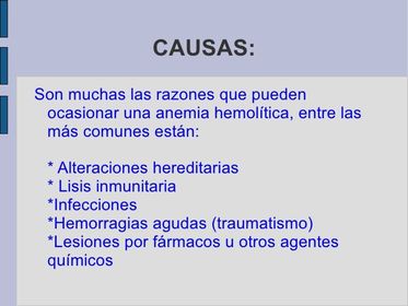 | ANEMIA HEMOLÍTICA es una afección en la cual el cuerpo no tiene suficientes glóbulos rojos sanos, es decir, los glóbulos rojos en la sangre se destruyen antes de lo normal (120 días). |