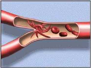 | DREPANOSITOSIS Aparecen como consecuencia de una mutación del ADN en el cromosoma 11, que es el responsable de la producción de la hemoglobina (Hb), y es sustituida por una versión anormal llamada hemoglobina S, que hace que los glóbulos rojos, habitualmente con forma de donut, se deformen y adquieran forma de hoz. | La consecuencia es que estas células sanguíneas tienden a aglomerarse, obstruyendo el flujo de la sangre y dañando los vasos capilares, y afectando el transporte de oxígeno a los diferentes tejidos, tales como el bazo, los riñones, el cerebro, los huesos y otros órganos. |
