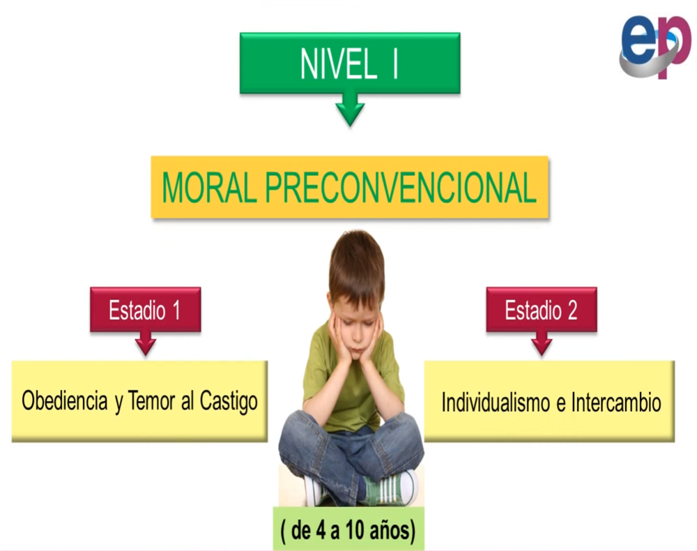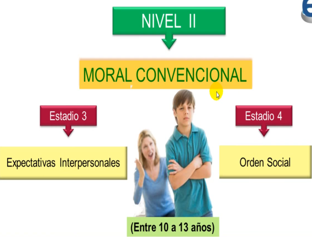 Nivel 1 Moral Preconvencional º El castigo y la obediencia º El propósito y el intercambio | Nivel 2 Moral Convencional º Expectativas, relaciones y conformidad º Sistema social y conciencia. |