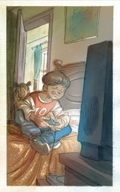 La grand-mère lit un conte à sa petite- fille avant de dormir. | |