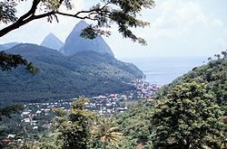| patrimonio natural de santa lucia:Las montañas Pitons son unas características montañas localizadas en la isla de Santa Lucía, símbolo de esa pequeña nación isleña del Caribe ubicada al norte de Venezuela. | SUDAMERICA |