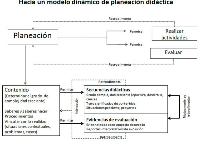 | Como se pudo visualizar en el cuadro anterior, la elaboración de una secuencia didáctica se encuentra inscrita en el marco de un proceso de planeación dinámica, donde todos los factores de la planeación se afectan entre sí. | |