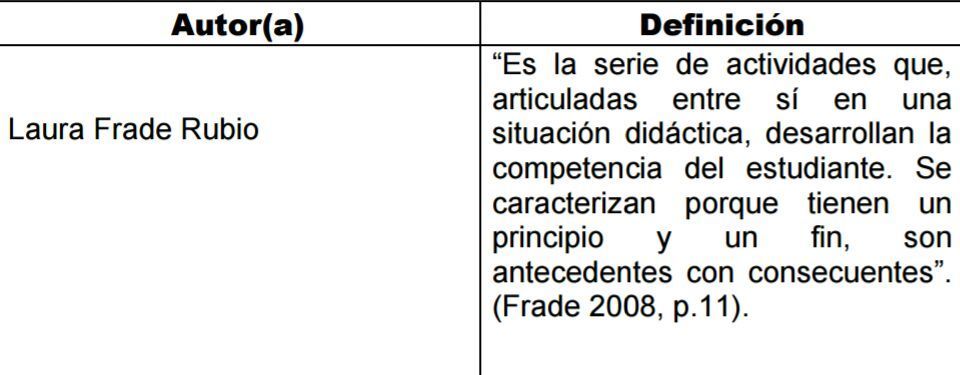 | SECUENCIA DIDÁCTICA | Es el resultado de establecer una serie de actividades de aprendizaje que tengan un orden interno entre sí |