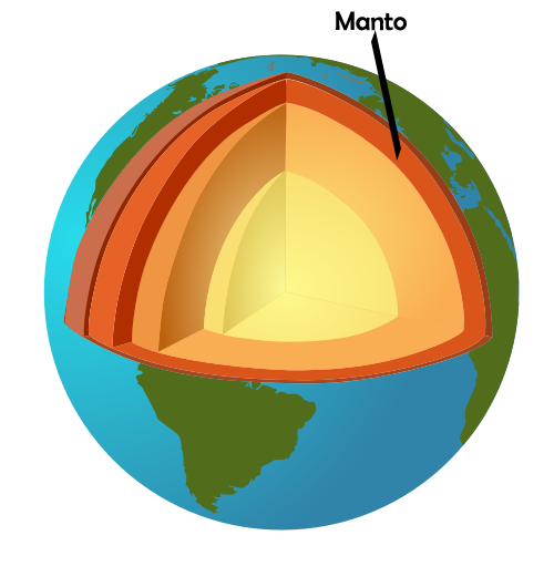 Manto: Es la segunda capa exterior y su temperatura es muy elevada, y algunas de sus rocas están fundidas. Recibe el nombre de Magma |