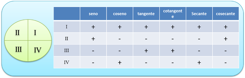 | mencione los signos en del las funciones en el circulo trigonometrico |