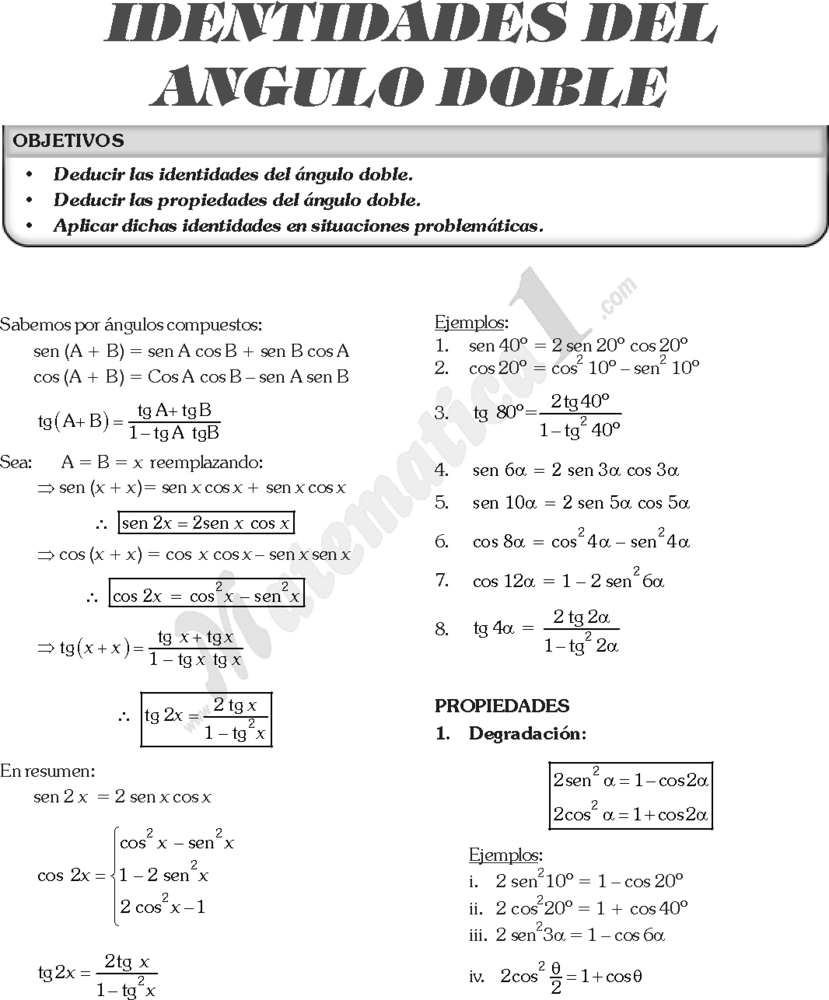| Identidad del angulos dobles.- mencione una identida del angulo doble | |