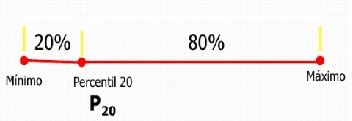 Valor del elemento que divide una serie de datos en cien grupos de igual valor o en intervalos iguales.