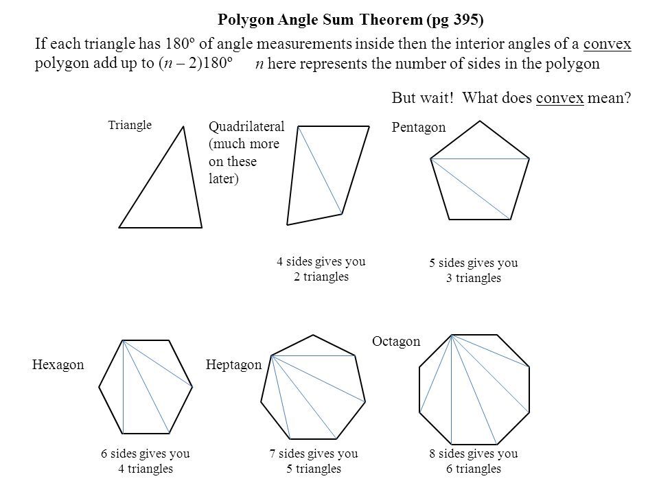 | The interior angles of a polygon add to 180(n - 2)°, where n is the number of sides (int ∠ sum of polygon) | |