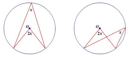 | The angle at the centre is equal to twice the angle at the circumference on the same arc (∠ at centre) |