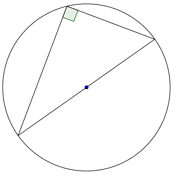 | The angle in a semicircle is a right angle (∠ in semicircle) |