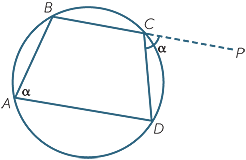 | The exterior angle of a cyclic quadrilateral is equal to the interior opposite angle (ext ∠, cyclic quad) |