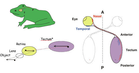 | Describe sperry's frog experiment and its results | Cut optic nerve and remove temporal retina (allows just nasal axons to grow back) Importantly, the regrowing ‘red’ axons grew through, yet ignored the territory normally innervated by the ‘blue’ axons. The axons grew back directly to the right place |