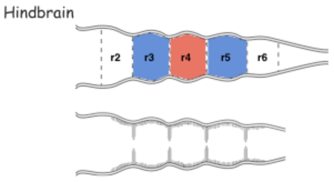 | What boundries do axons follow in the hindbrain? | Follow boundries of rhombomeres |