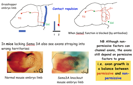 | What is the evidence that non-permissive factors such as semaphorins can channel axon growth? | |