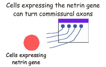 | What evidence is there that axons reprogram when intermediate targets (choice points) are encountered? | After transit of the midline, commissural axons lose responsiveness to netrins i.e. Sensitivity of axons to floor plate (netrins) changes after midline is crossed. |