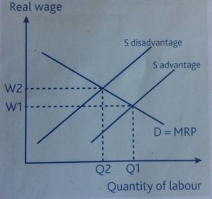 | Male and Female workers (2) | Less female workers are part of a trade union so they have less bargaining power. Many women miss out on promotions or higher paid jobs because of children. Negative discrimination also exists when employers undervalue the MRP of a female worker |