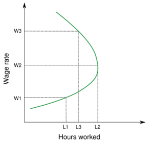 | The backward bending curve | This curve suggests that at a high wage level an increase in the wage will lead to a reduction in the hours of labour supplied. This is because an individual will need to work less hours to meet their income target. This is normally the point where income level secures the standard of living. |