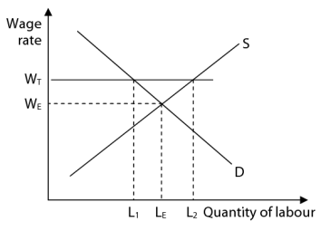 | Trade unions | A monopoly under the labour market to increase wages. Trade unions will want to raise wages, E.g. We-Wt which creates a new supply curve of WtS and since no workers will be prepared to work below Wt employment will fall from Le-L1 |