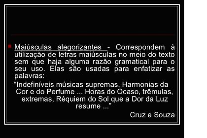 | EXPLIQUE A CARACTERÍSTICA USADA NO SIMBOLISMO "DAS MAIÚSCULAS ALEGORIZANTES". |