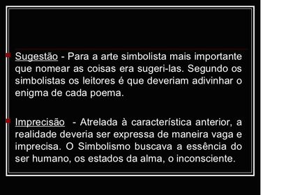 | QUAIS AS PRINCIPAIS CARACTERÍSTICAS DO SIMBOLISMO? | |