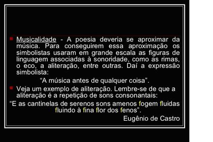 O QUE VEM A SER A CARACTERÍSTICA DA MUSICALIDADE USADA PELOS POETAS DO SIMBOLISMO?
