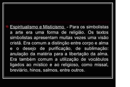 | DEFINA AS CARACTERÍSTICAS DO ESPIRITUALISMO E MISTICISMO USADAS PELOS POETAS SIMBOLISTAS. | |
