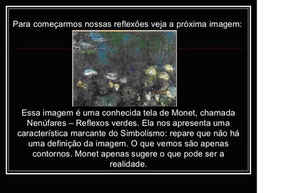 | NO TOCANTE À ARTE NO SIMBOLISMO, OS PINTORES, COMO MONET, FAZIAM USO DE QUAL RECURSO? |