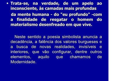 | QUAIS OS PRINCIPAIS PONTOS NA POESIA NO SIMBOLISMO? | |