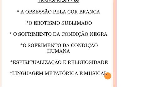 | QUAIS OS TEMAS ABORDADOS NAS POESIAS DE CRUZ E SOUZA? | |