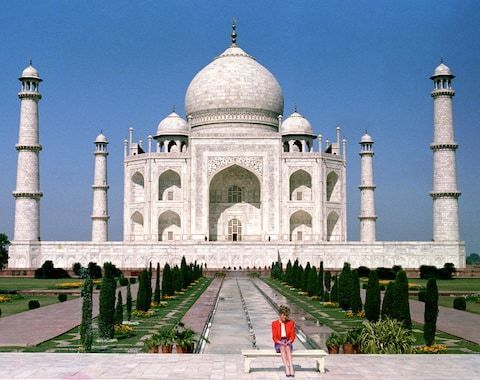 | a mausoleum located in Agra built by the Mogul Emperor Shah Jahan in 1632 in memory of his wife | Taj Mahal |