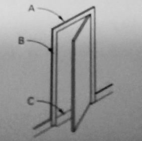 In this diagram of a door opening, what are the components labeled A, B, and C?