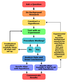 | scientific method | a method of procedure that has characterized natural science since the 17th century, consisting in systematic observation, measurement, and experiment, and the formulation, testing, and modification of hypotheses. |