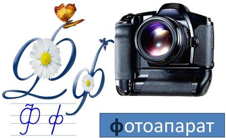 | Ф Очила за слънце носи лятно време кака Роси – две стъкла и нос отпред са на буквата портрет. Фани, фотоапарат, фуния. | |