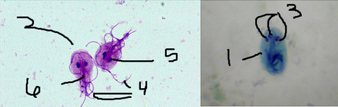 Common name: Urogenital Parasite D: Eukarya K: Protista P: Metamonada C: G: Trichomonas s: vaginalis 1. Nucleus 2. Flagella |