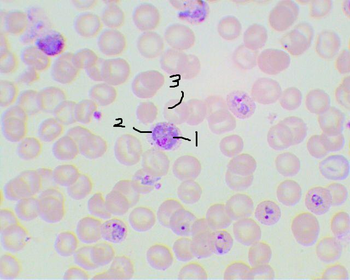 Common name: Intracellular blood parasite D: Eukarya K: Protista P: Apicomplexa C: G: Plasmodium s: vivax/species 1. Parasite 2. Leukocyte (WBC) 3. Erythrocyte (RBC) |