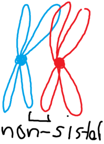 non-sister chromatids | chromatids attached to different centromeres |
