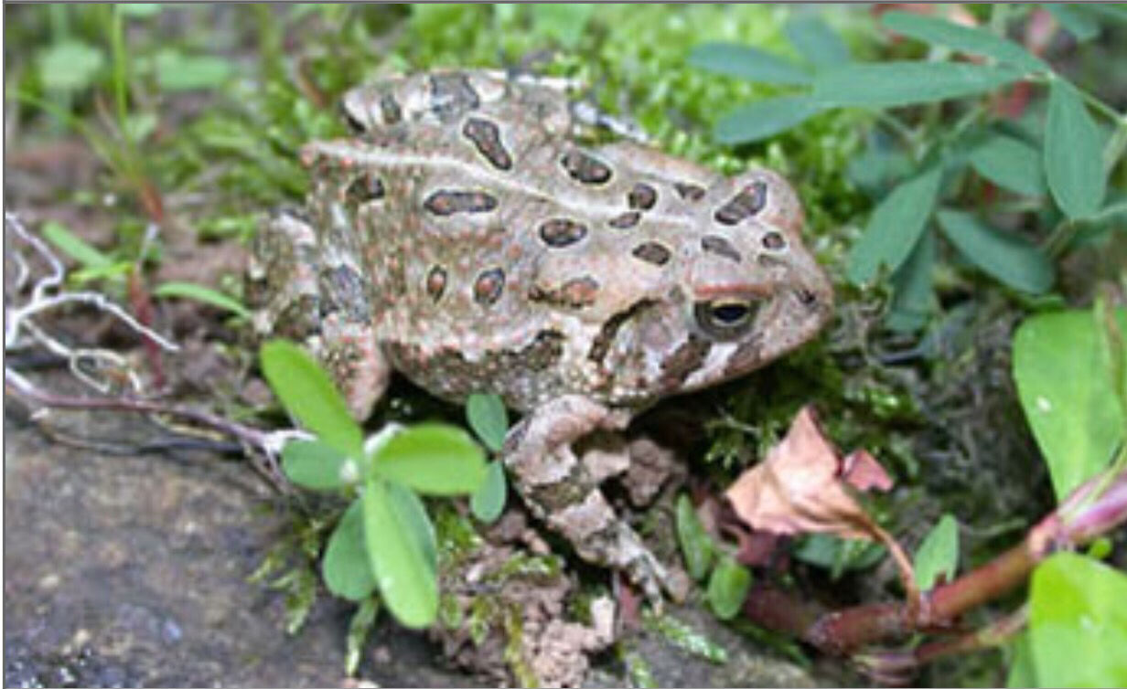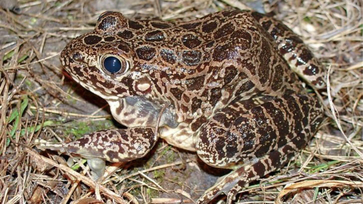 Northern Crawfish Frog Lithobates Areolatus circulosus Head is disproportionately large. Color varies from light tan to light grey, spots may be dark brown, grey or nearly black. The spots are Giraffe-like in some opinion. |