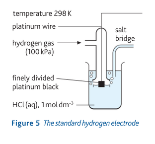when measuring the electrode potentials using a standard hydrogen electrode, it is important to do it under | it's standard states which are: 1. any solutions of ions have a conc of 1.00moldm-3 2. the temperature must be 298K (25C) 3. the pressure must be 100kPa |
