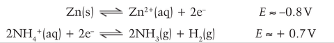another reason why the zinc-carbon electrode cannot be recharged is because | the ammonium ions would produce hydrogen gas, which would escape from the battery. without the hydrogen, the ammonium ions couldn't be reformed by reversing the reactions |