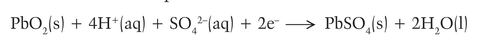 the positive plate in a lead acid batter is made up of | lead coated with lead(IV) oxide, PbO2 |