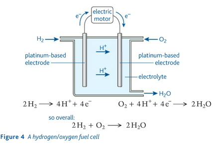 the alternative to burning hydrocarbons for fuel is.. | the fuel cell, which uses oxygen and hydrogen as fuels to produce electricity to drive an electric motor |